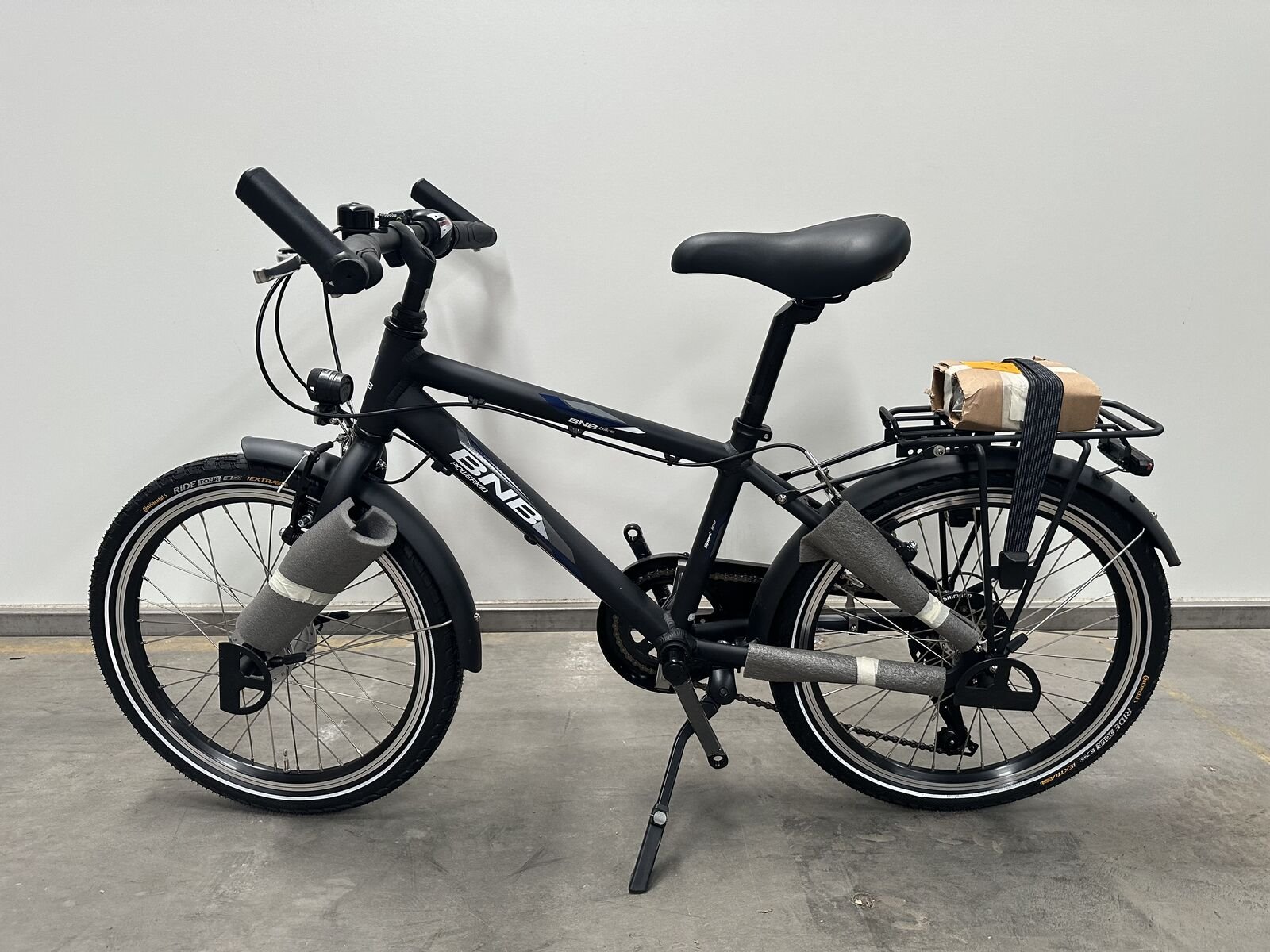 Type: Powerkid, 20 inch, mat zwart/blauw, groepset: Shimano Tourney, (ongebruikt)
