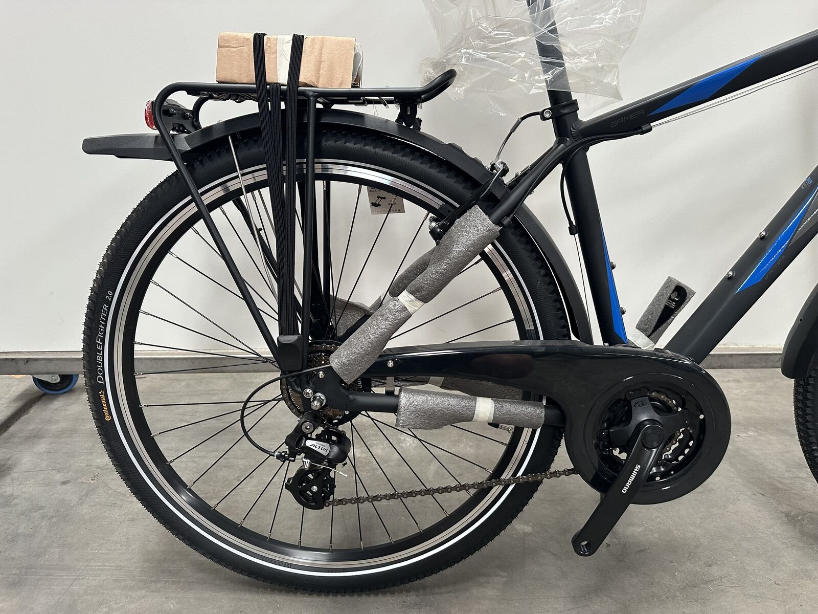 Type: Gamer, 27 inch, mat zwart/blauw, groepset: Shimano Altus, (ongebruikt)