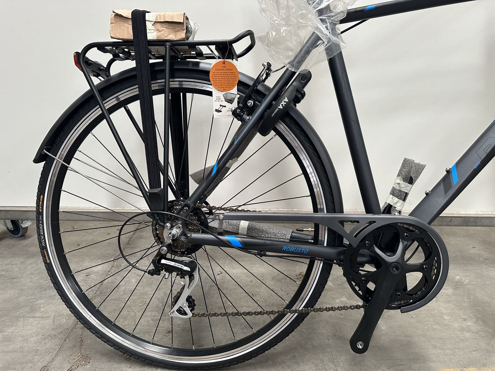 Type: Robusto, 28 inch, mat zwart/blauw, groepset: Shimano Acera, (ongebruikt)