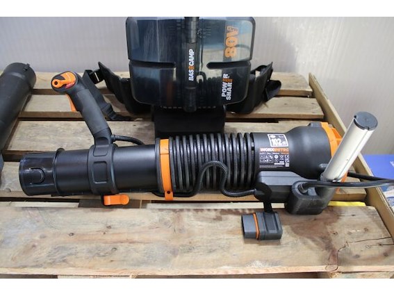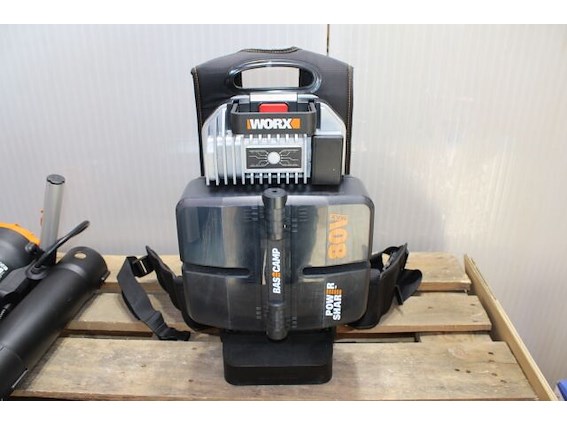 Gebruikssporen, getest en werkend, ok, batterijen ontbreken, WORX Nitro 80 V bladblazer WG572E (4 x 20 V/4000 mAh) met accu-rugzak en power-/laaunit BASECAMP, B0BBRP5S2L