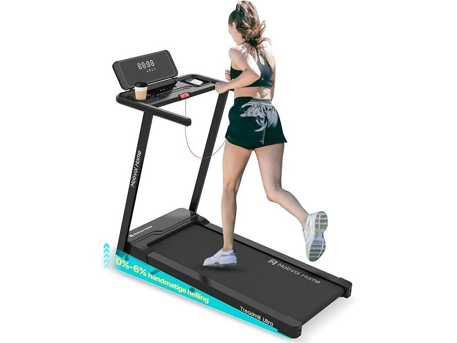 Gebruikssporen, getest en werkend, volledig, ok, Mobvoi Home Loopband Ultra 3 in 1 Loopmat met Opvouwbare 6% Helling voor Thuiskantoor 2.5HP Loopbandhouder voor Koptelefoon Laptop Groot Loopoppervlak LED-scherm Luidspreker 12 km/u 120 kg, B0DHVGZC2P