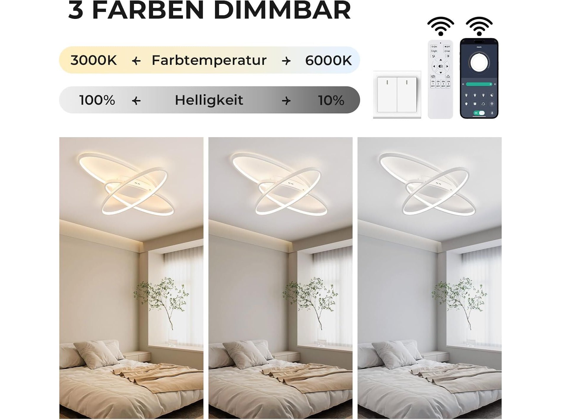 Ongeopend, homwarmy Led-plafondlamp, plafondlampen met afstandsbediening, 50 W, Wit, moderne plafondlamp voor woonkamer, 54 cm, keuken, plafondlamp, dimbaar [Energieklasse E] B0DBQDS5C7