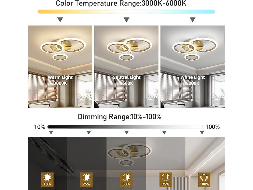 Ongeopend, LED-plafondlamp, dimbaar, 35 W, 58 cm, moderne plafondlamp met afstandsbediening, 3000 K-6500 K, 3 ringen, ronde slaapkamerlamp, LED-plafondlampen voor kantoor, keuken en eetkamer, B0DCZG835Z