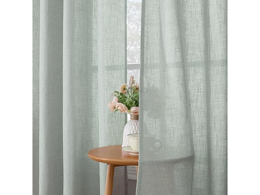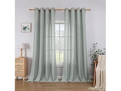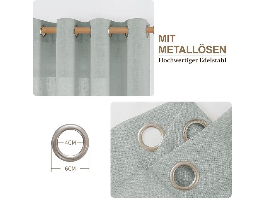 Ongeopend, in seal, CUCRAF Linnen gordijnen met oogjes landhuisstijl voile gordijn half-transparant gordijnen voor slaapkamer kinderkamer woonkamer, H 260 x B 140 cm, set van 2, saliegroen, B0CKDYW1VS