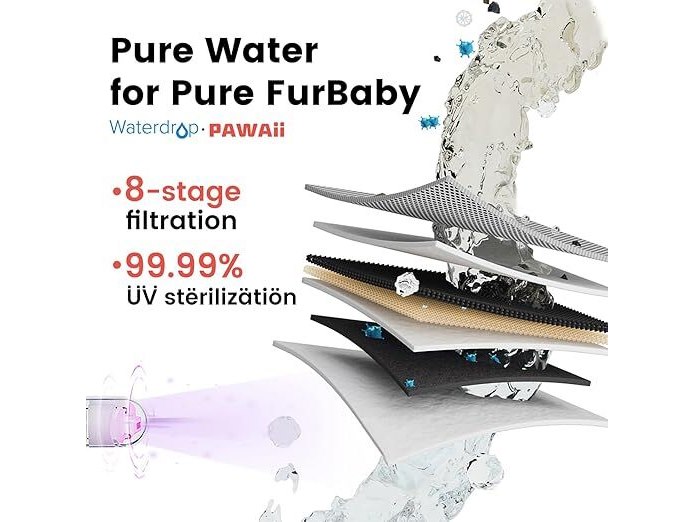 Ongeopend, Pawaii Kattendrinkfontein, op batterijen werkende kattenfontein met draadloze waterpomp en bewegingsmelder, 2 liter, ultralichte uv-sterilisatie, waterfontein, sensor met led-display, B0BTDDJGSG