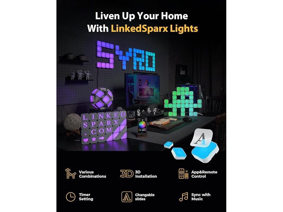 Ongeopend, ok, LinkedSparx 3D vierkante lichtpanelen, intelligente RGB LED-wandlampen voor gaming met app en afstandsbediening, coole muzieksynchronisatie voor woonkamer, slaapkamer, speelkamer (verpakking van 24), B0CQ75C489
