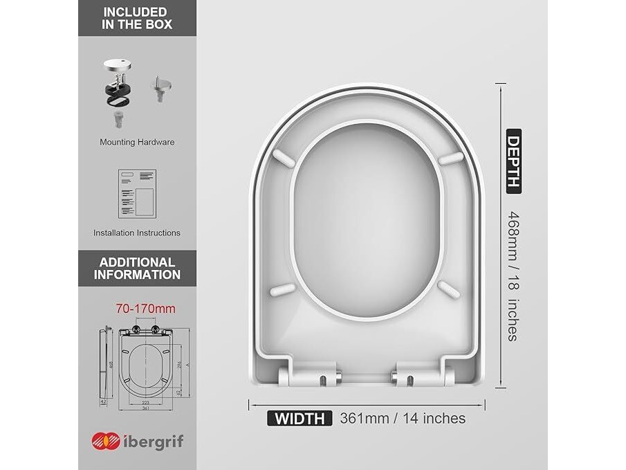 Ongebruikt, volledig, ok, licht beschadigde verpakking, Ibergrif M41001 D-vorm Toiletdeksel Softclose Quick Release WC-bril Verstelbare bril Scharnieren Eenvoudige Reiniging, B0743MMX75