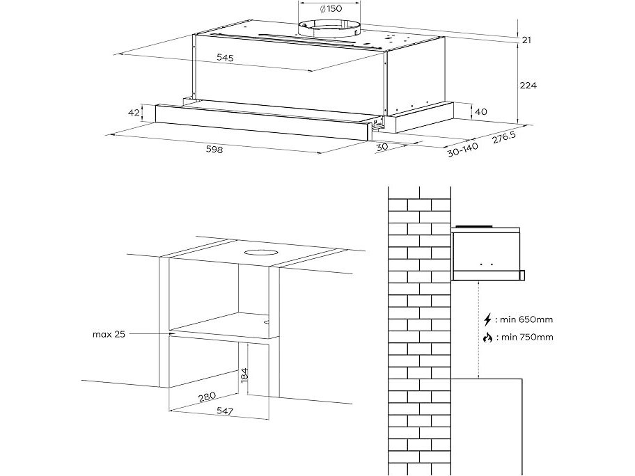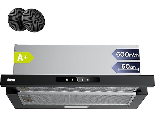 Ongebruikt, getest en werkend, volledig, ok, CIARRA CBCB6909A A+ afzuigkap (60 cm) onderbouw-600 m³/u met 3 snelheden Touchbediening-Afvoer en recirculatie afzuigkap met koolstoffilter CBCF055-Zwart, B0F3D6N1JM