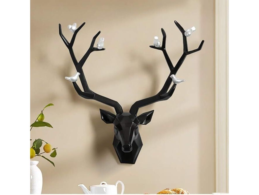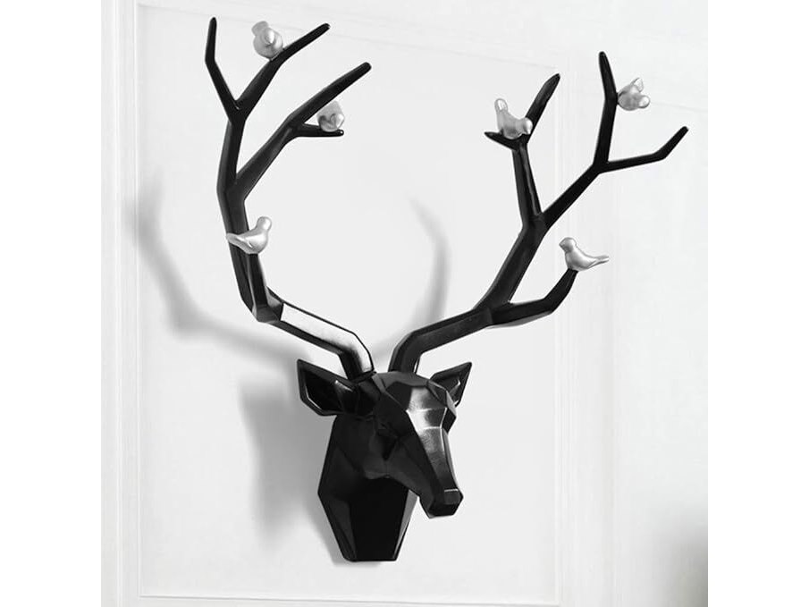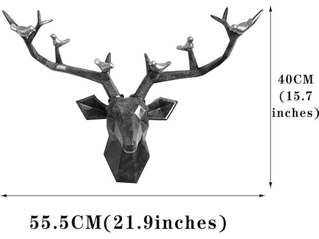 Ongeopend, YHRJ Papercraft 3D hertenkop, wanddecoratie, sculptuur, hertenkop 55x40cm, voor binnenruimtes, hangend cadeau, geometrische dierenkop, milieuvriendelijke hars, zwart, B08FJ3KXT6