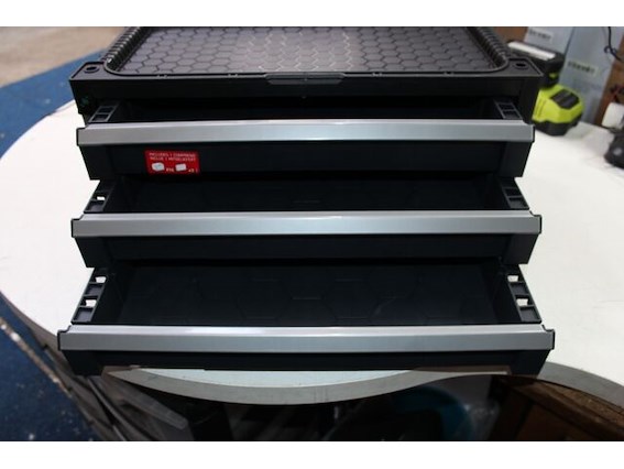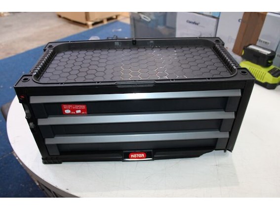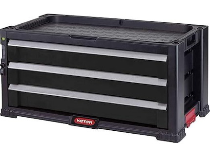 Ongebruikt, ok, hoek afgebroken (zie foto's), KETER Opzet met 3 laden voor gereedschapswagen, zwart, 56 x 29 x 26,2 cm, modulair, stapelbaar, afsluitbaar, met organizer voor kleine onderdelen, B07GP2S9ZJ