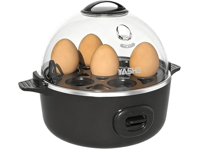 Minieme gebruikssporen, getest en werkend, ok, YASHE elektrische eierkoker voor 7 eieren, eierkoker met muziekalarm, automatische uitschakeling, plastic eierstoommandje met LED-draaischakelaar, 360W,B0FM31NNJ8
