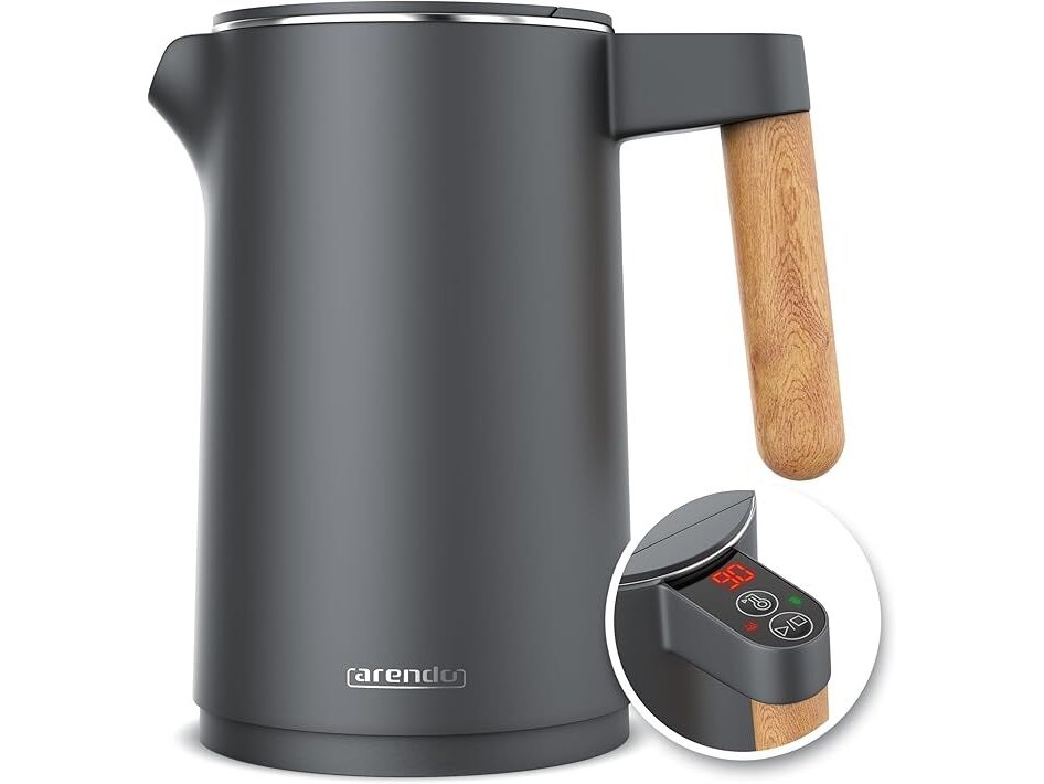 Minieme gebruikssporen, getest en werkend, lichte krasjes, originele verpakking ontbreekt, ok, Arendo - Roestvrijstalen waterkoker met temperatuurregeling - 100 °C - 100 °C - 1,5 liter - dubbelwandig - BPA-vrij - warmhoudfunctie - waterkoker met temperatuurweergave - handvat met koele aanraakfunctie,B0DG96884Y