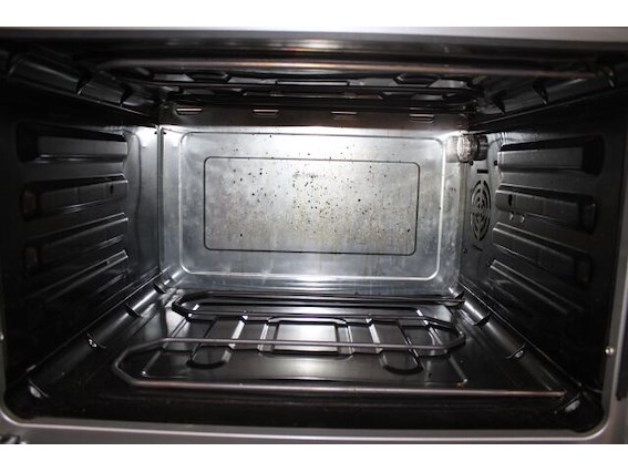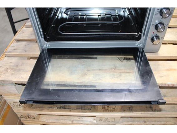 Gebruikssporen, getest en werkend, volledig, deuk in handvat en zijkant (zie foto's), krassen aan bovenkant, BeHome Elektrische oven 70 l met draaispit, zelfreinigend, geëmailleerd, temperatuur tot 320 graden, dubbel glas met licht en timer, 1 draaispit, 2 bakplaten en 1 grill (grijs), B09XXNJ7HY