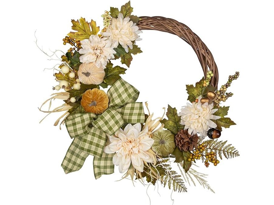 Ongeopend, in seal, Herfstdeurkrans (61 cm) kunstmatige pompoenkrans herfstkrans met fluwelen pompoen, dahlia en strik, herfstkrans voor Halloween, Thanksgiving-krans-ideeën voor je huisdeur, binnen- en buitendecoratie, B0CRB7NZT4