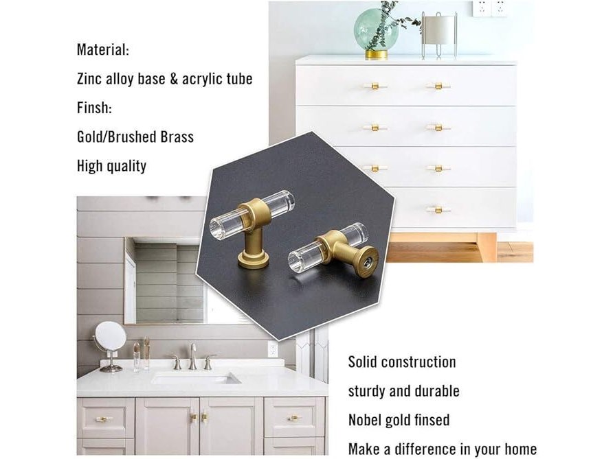 Ongeopend, in seal, Goldenwarm 10-delige set geborsteld messing kastknoppen/ladeknoppen van acryl - LS9165GD Acryl handgrepen voor keukenkasten, dressoirs en kasten,B086PYC8JQ