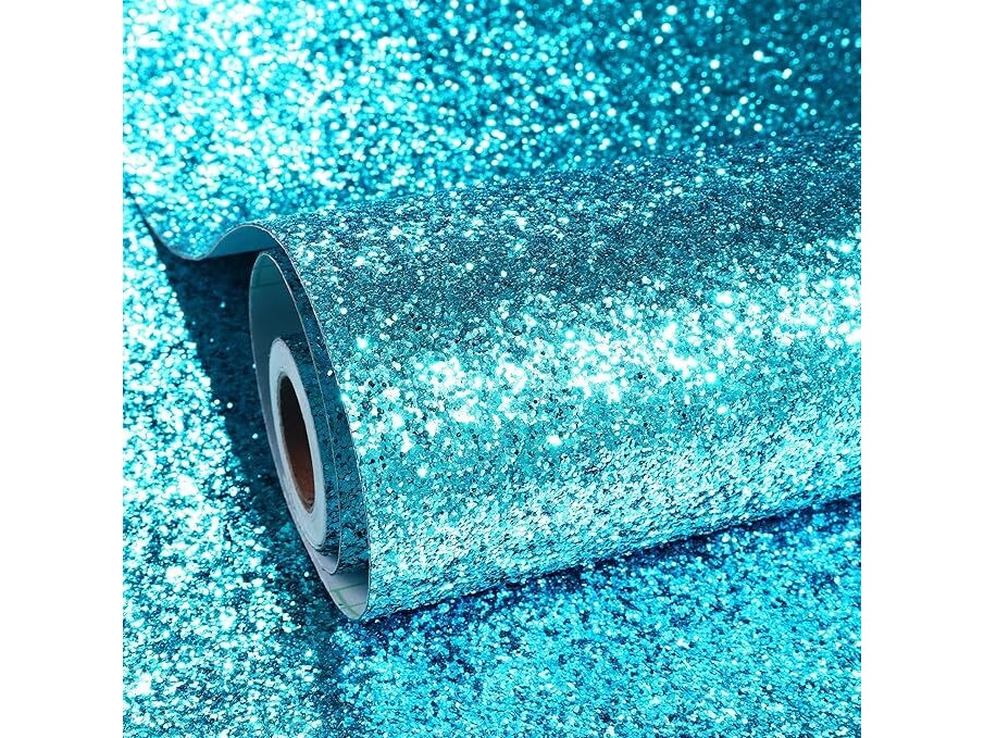 Ongeopend, in seal,4 X ReWallpaper pailletten glitterbehang blauw 60CMx5M meubelfolie glitter waterdicht zelfklevend behang badkamer keuken blauw kinderkamer art deco voor tafel kasten dikke folie zelfklevende rol,B0DPHGKCSB