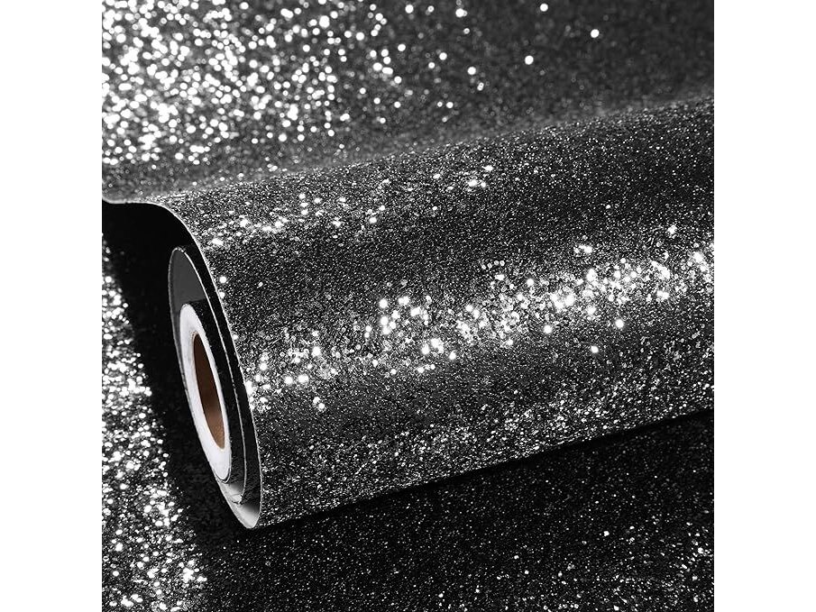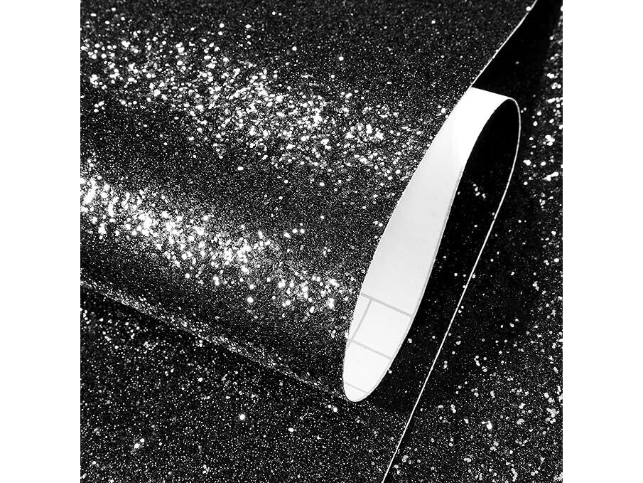 Ongeopend, in seal, 4 x ReWallpaper 60CMx5M Zwart Behang Zelfklevend Glitter Keukenfolie Folie voor Kastjes Folie voor Meubels Deuren DIY Zwart Pailletten Glittereffect Behang Slaapkamer Vintage Gestructureerd Behang,B0DPHGG3KV