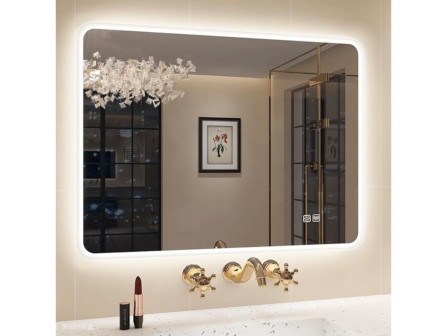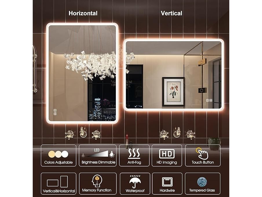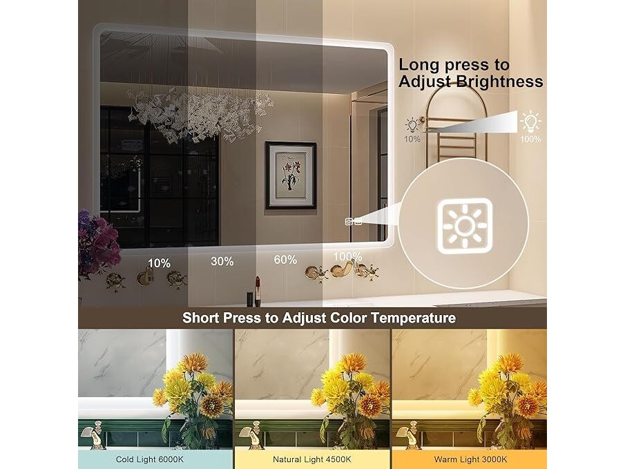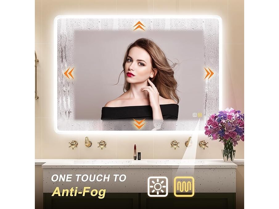 Ongebruikt, getest en werkend, vijs en plug tekort, ok, Starlead badkamerspiegel met verlichting, 80 x 60 cm, dimbaar, 3 kleurtemperaturen, 3000K-6500K, LED, badkamerspiegel, anti-condensfunctie, geheugenfunctie, IP44, horizontaal/verticaal gehard glas, B08Y6PS99C