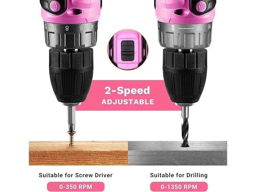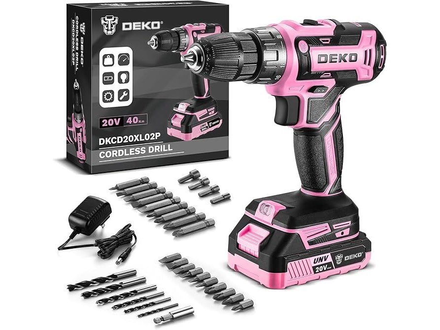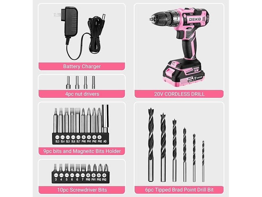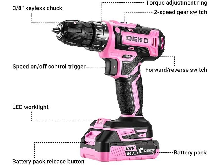 Ongebruikt, getest en werkend, volledig, ok, Draadloze boormachine: DEKOPRO Roze Draadloze Boormachine 20V Elektrische Boormachine Set Gereedschap voor Dames Draadloze Boormachine met Accu en Oplader Boormachine Schroefmachine 20 Volt Boormachine Schroefmachine Kit,B0CC1S7SPC