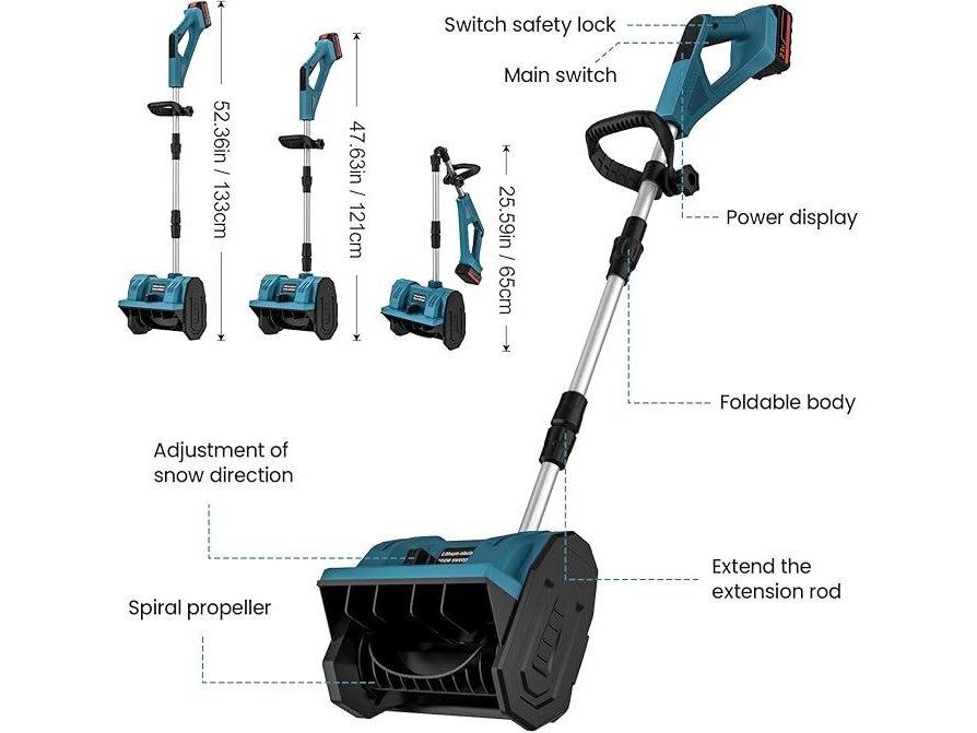 Minieme gebruikssporen, getest en werkend, accu ontbreekt, flex buis gescheurd, ok, Accu-sneeuwblazer voor Makita 18 V accu, elektrische sneeuwborstel met telescoopstang, 33 cm ruimbreedte, max. sneeuwhoogte 20 cm, 45° draaikop, voor oprit en tuin,B0FKSYH7JW