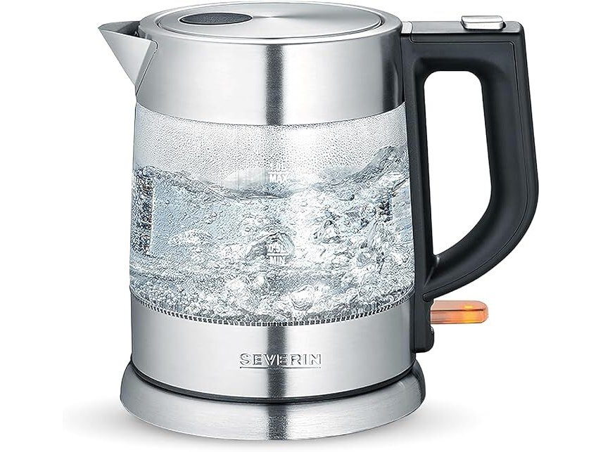 Ongebruikt, getest en werkend, volledig, ok, SEVERIN Glazen waterkoker, krachtige en compacte waterkoker met hoogwaardig design, waterkoker met kalkfilter, roestvrij staal/zwart, WK 3468,B075YGXV4Y