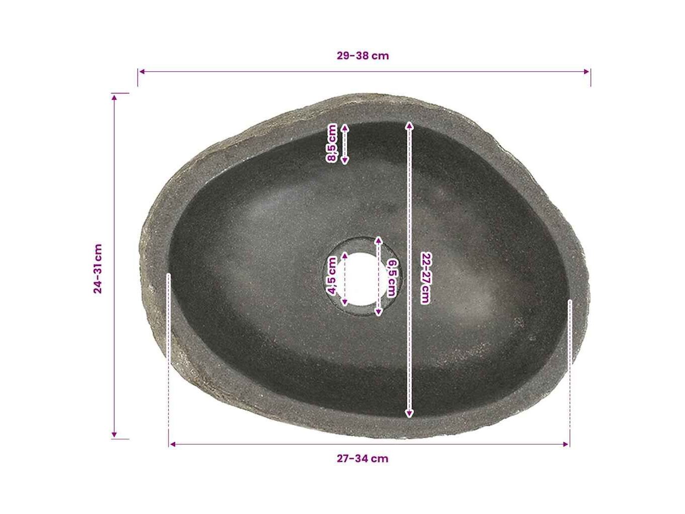 Ongebruikt, volledig, ok, vidaXL Wastafel ovaal (29-38)x(24-31) cm riviersteen, 8719883860121