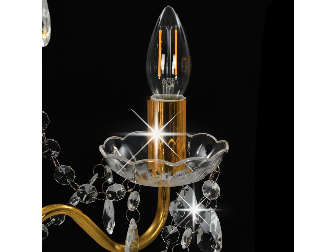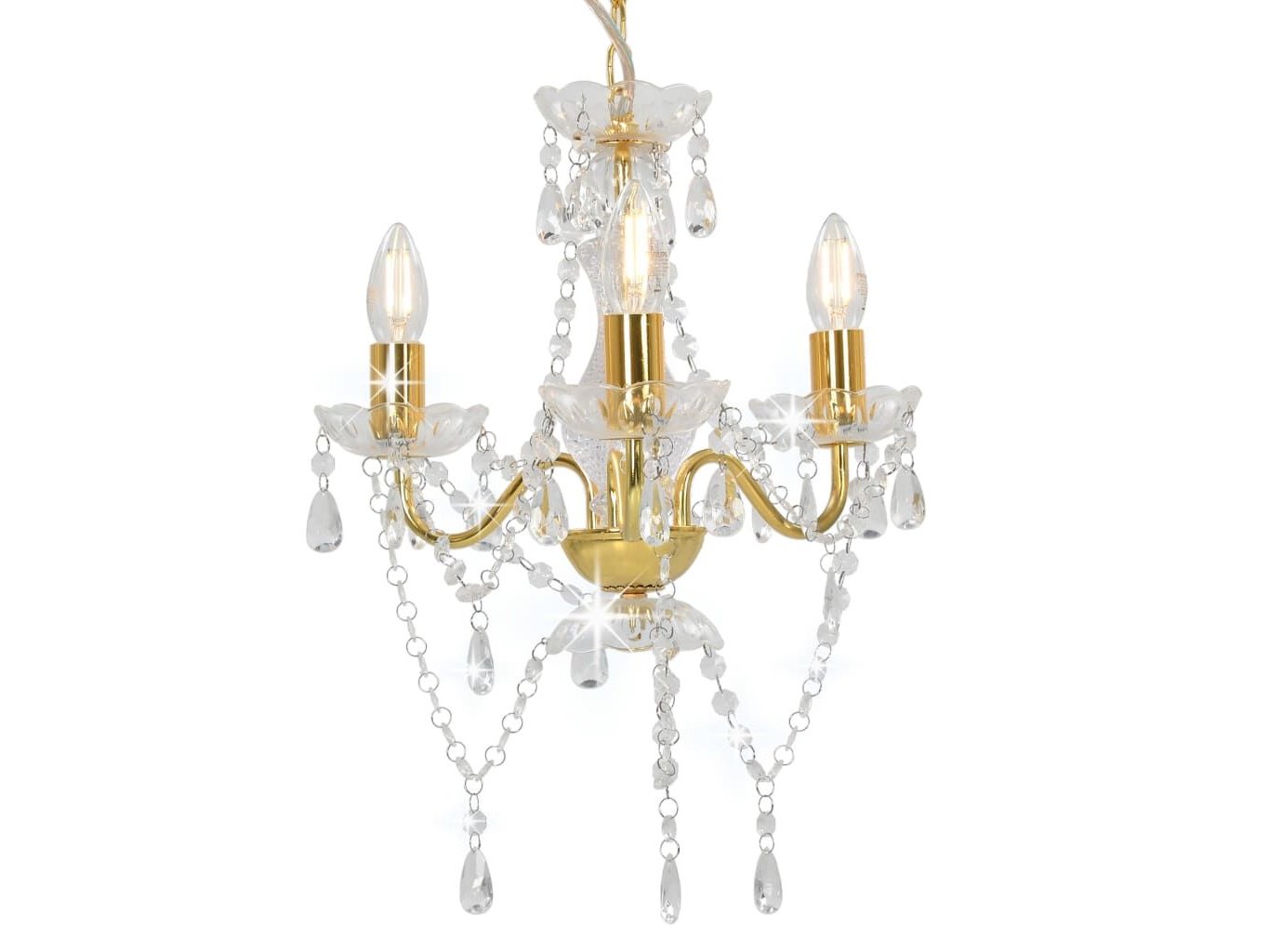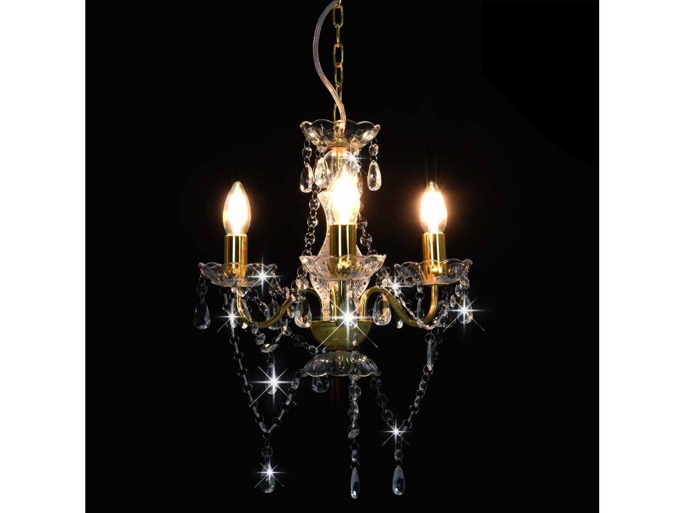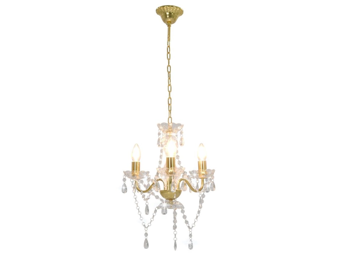 Ongebruikt, getest en werkend, volledig, ok, vidaXL Kroonluchter met kralen rond 3xE14 goudkleurig, 8719883573236