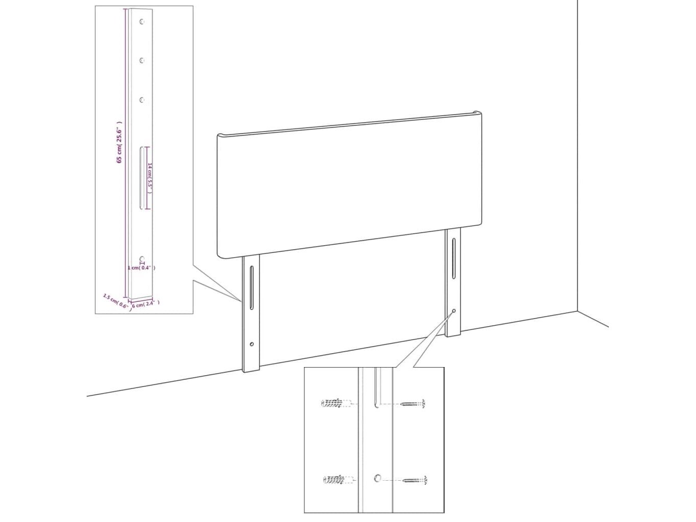 Ongebruikt, volledig, ok, vidaXL Hoofdbord 100 x 5 x 78/88 cm fluweel roze, 8720287150855