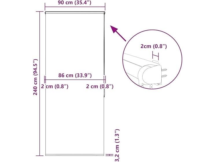Ongebruikt, volledig, ok, vidaXL rolgordijn met cassette 90x240 cm stofbreedte 86 cm, doucherolgordijn, oprolbaar douchegordijn, badkamer doucherolgordijn, 8721158353122