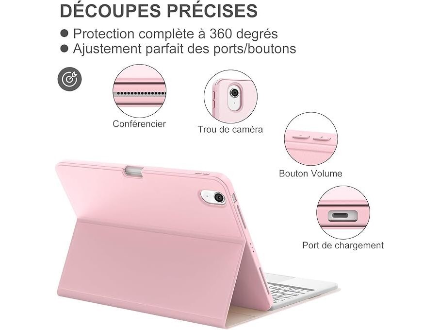 Ongeopend, ok, JADEMALL Toetsenbord met trackpad, AZERTY Frans toetsenbord afneembaar met trackpad, roze, B0FCFHFZGB