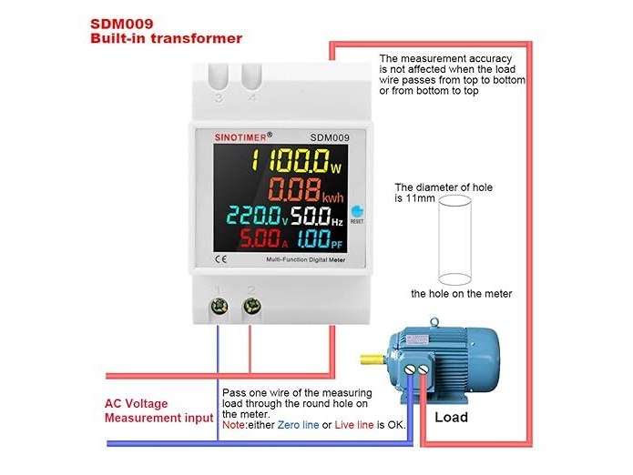 Ongeopend, ok, 2 x Sinotimer Ampèremeter eenfasig 6-in-1 AC ampèremeter voltmeter, digitale stroomverbruikmonitor AC40-300V 100A, B0DK6H98L3