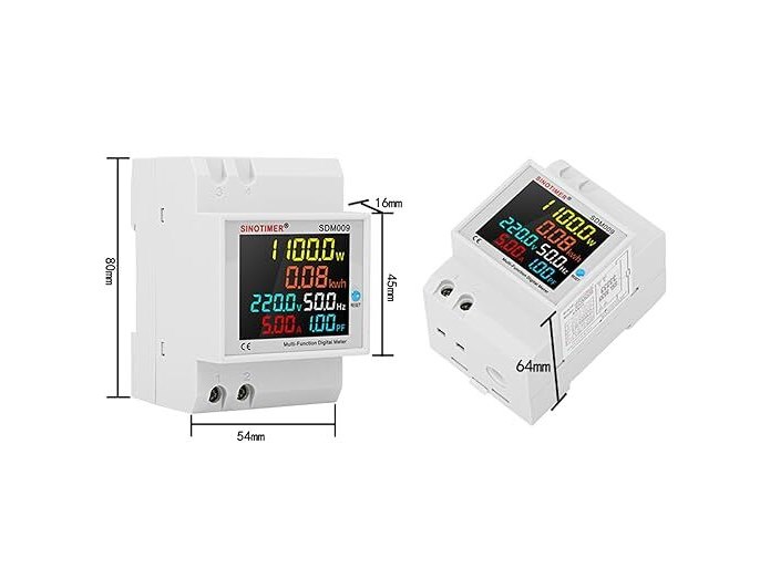 Ongeopend, ok, 2 x Sinotimer Ampèremeter eenfasig 6-in-1 AC ampèremeter voltmeter, digitale stroomverbruikmonitor AC40-300V 100A, B0DK6H98L3
