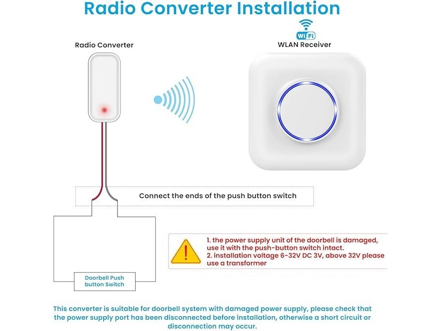 Ongeopend, BITIWEND Draadloos signaal, omleiding, wifi, smart draadloze uitbreidingsset, deurbel en gong omleiding, draadloze converter (6-32V DC 3V) voor beschadigde voeding, belinstallaties, B0CFZVNP1G