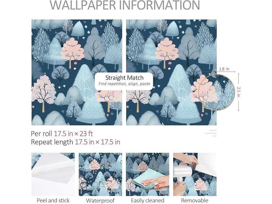 Ongeopend, in seal, 7 x ReWallpaper zelfklevend behang kinderkamer bos 44.5CM×7M meubelfolie blauw patroon voor ladekast kasten behang badkamer waterdicht motief sneeuw decoratieve folie slaapkamer vintage, B0DPHD8PBB