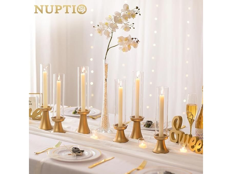 Ongeopend, NUPTIO Orkaan Kandelaar Goud 6 Stuks Grote Glazen Kandelaars Taper Kaars Bruiloft Centrepieces voor Tafels Eetkamer Mantel Kerstmis Home Decor, B0D8PB6ZZT