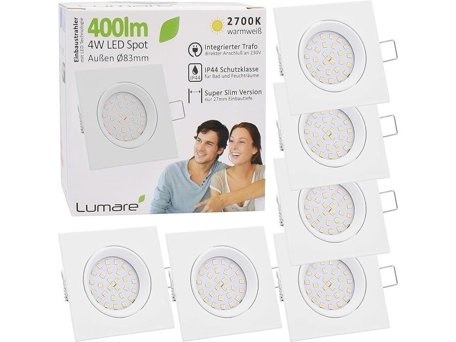 Ongeopend, in seal, Lumare LED Inbouwspot 4W | Extra Ondiep, 27mm Inbouwdiepte | Ø75mm Diameter Boorgat | Spot Woonkamer, Badkamer | Inbouwspot Wit Hoekig | 230V | IP44 | Warm Wit 2700K | Set van 9, B0785RZ6X8