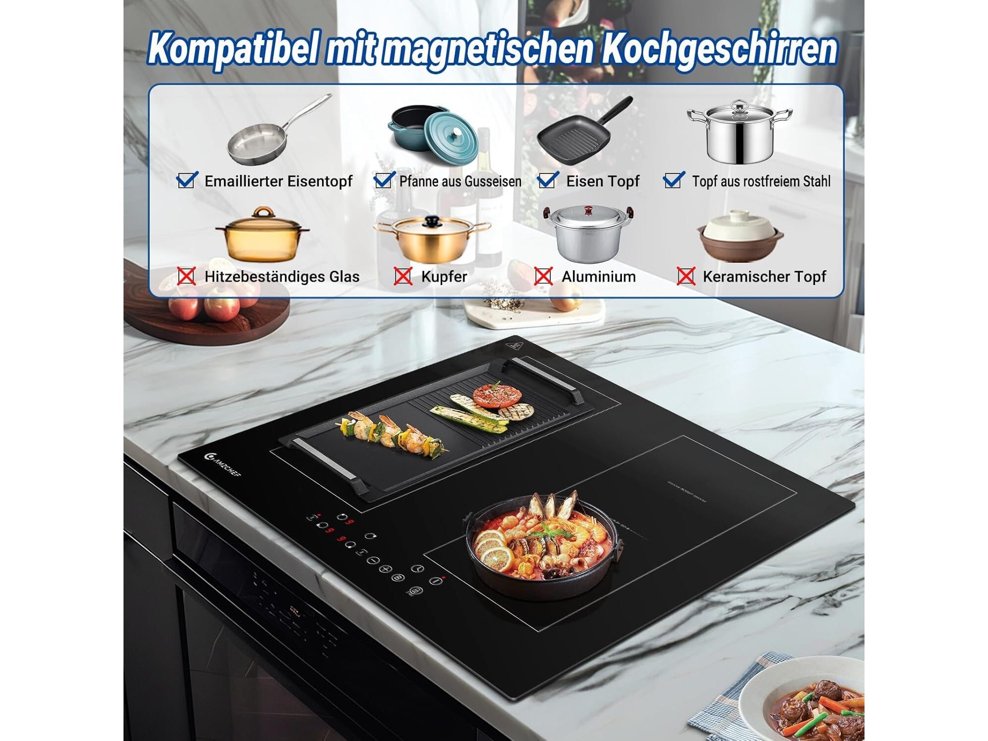 Amzchef inbouw inductiekookplaat (4 zones)