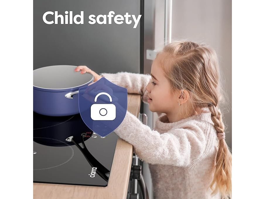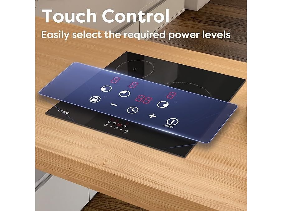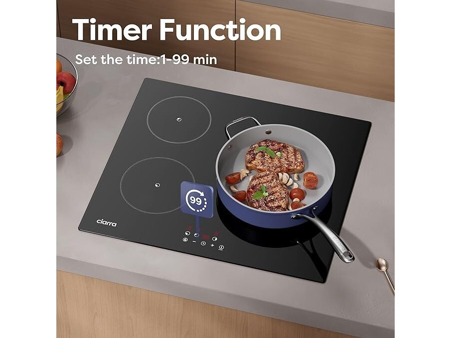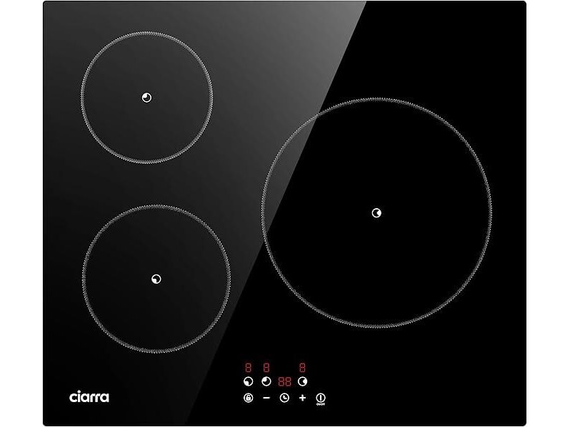 Minieme gebruikssporen, getest en werkend, volledig, ok, CIARRA Inductiekookplaat, 3 platen, 5600 W, kookplaat, 9 standen, touch-bediening, timer van 99 minuten, glas, zwart, CABBIH3-F, B0DR21NY2W