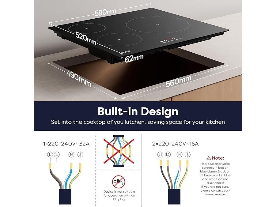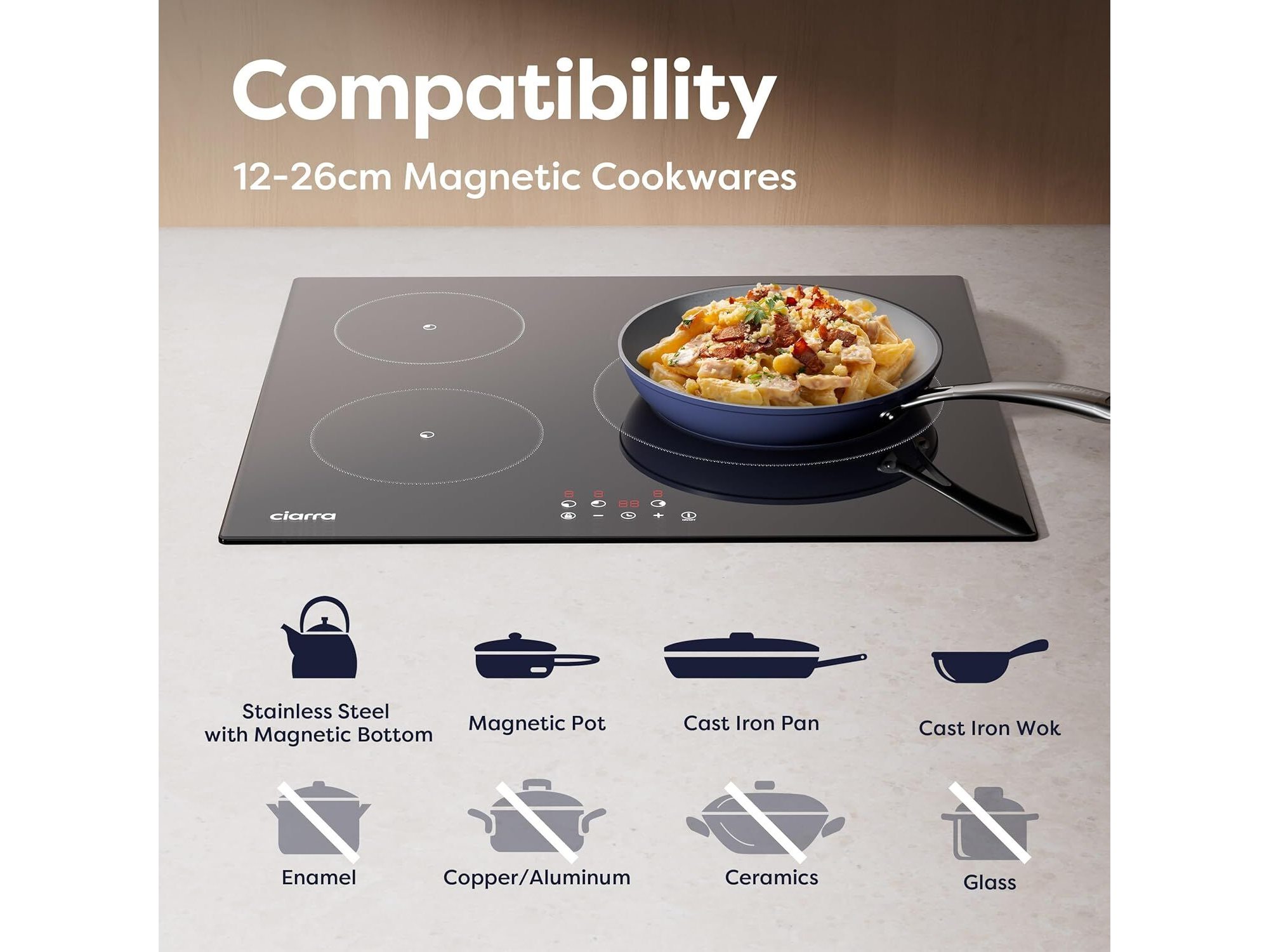 Ciarra inbouw inductiekookplaat (3 zones)