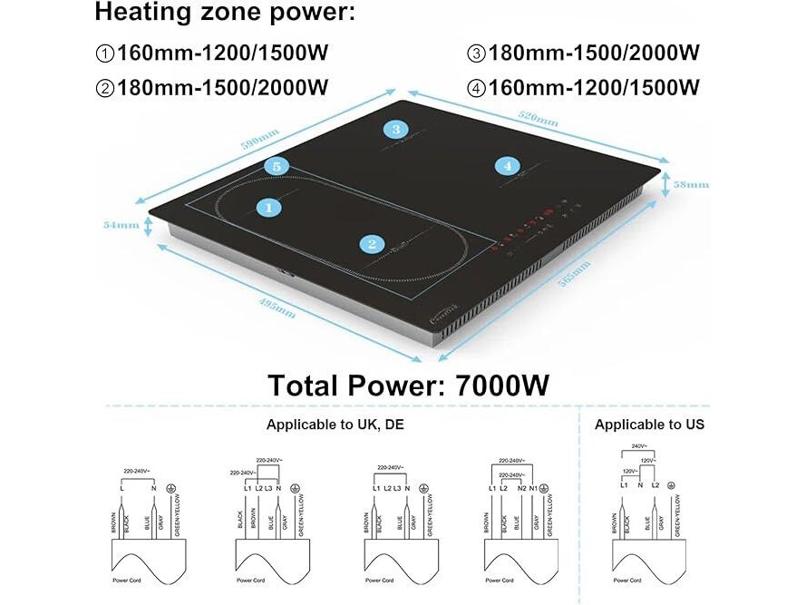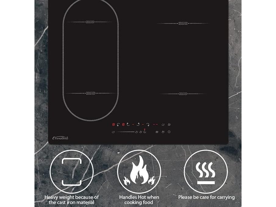 Minieme gebruikssporen, getest en werkend, volledig, ok, Covercook inbouw inductiekookplaat (4 zones), 60 cm met brugzone, 7000W elektrische kookplaat met touchbediening, timer, kinderbeveiliging, boost- en pauzefunctie, zwart, B09WY9QJLM