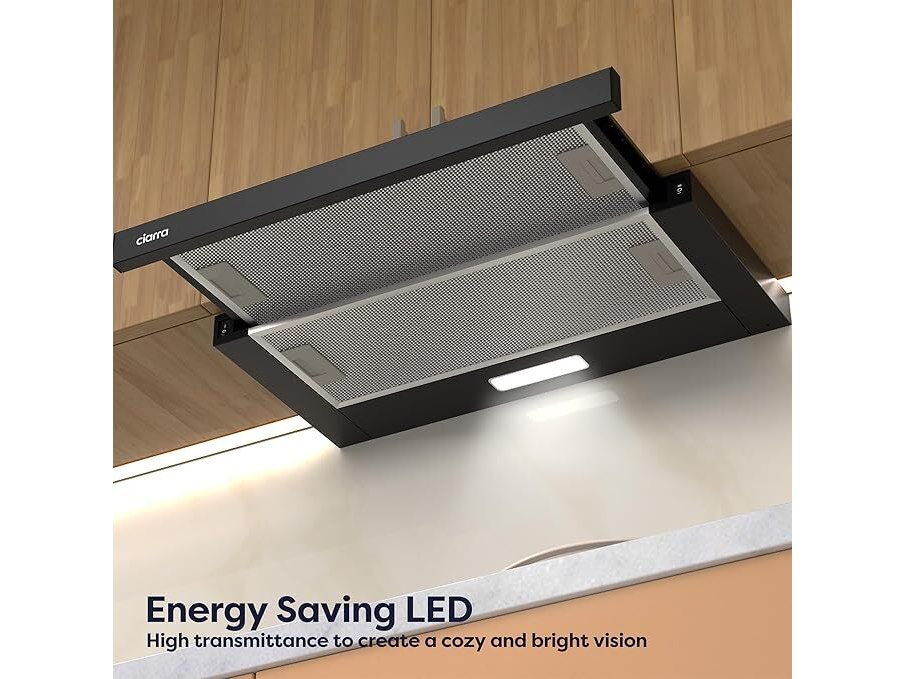 Minieme gebruikssporen, getest en werkend, volledig, ok, originele verpakking ontbreekt, CIARRA CBCB6906D A++ platte afzuigkap (60 cm) 370 m³/h met CBCF002X2 actieve koolfilter geïntegreerde inbouw platte afvoerlucht circulatielucht afzuigkap 2 standen LED-verlichting zwart, B0BY2LSGVG