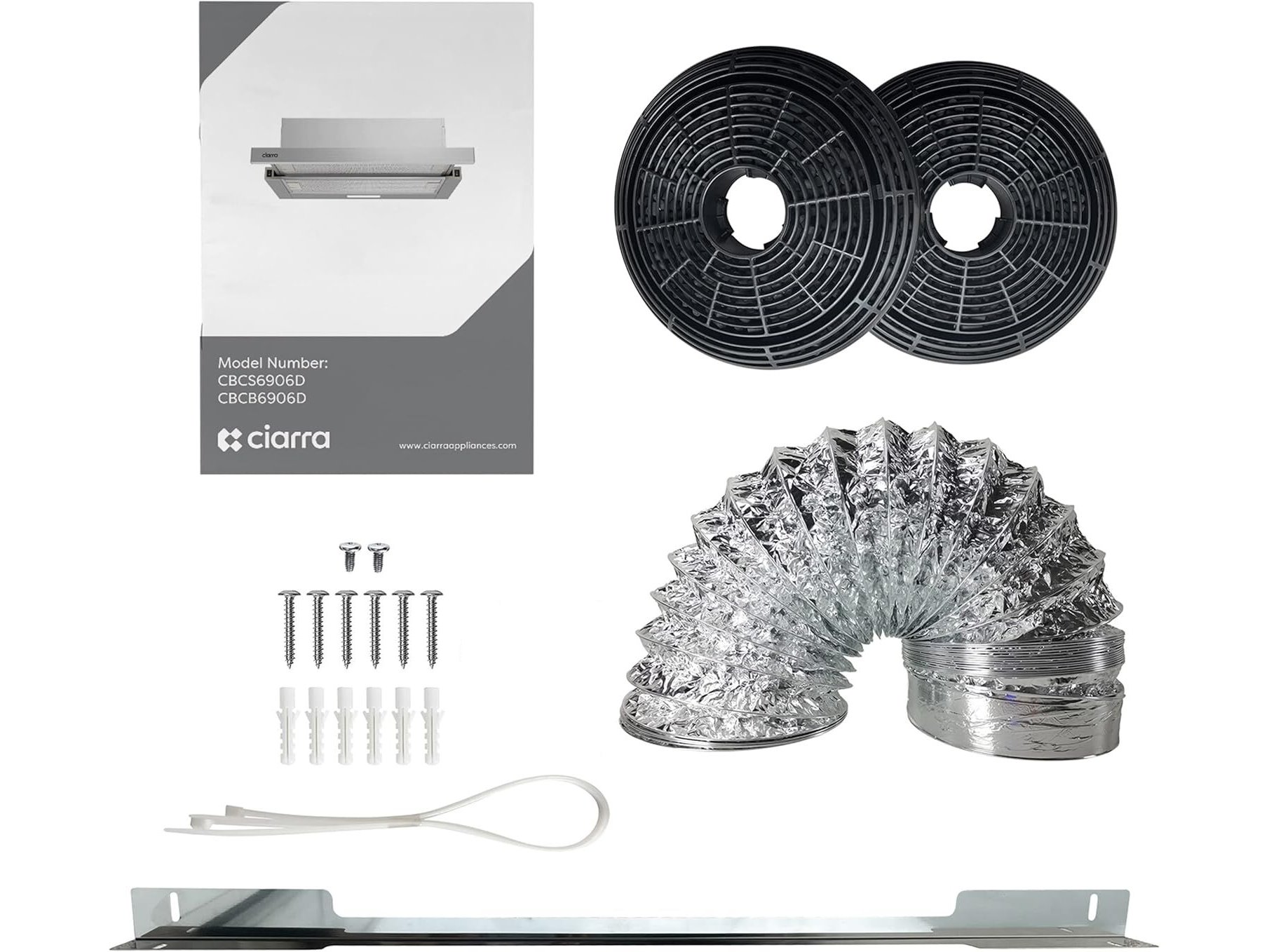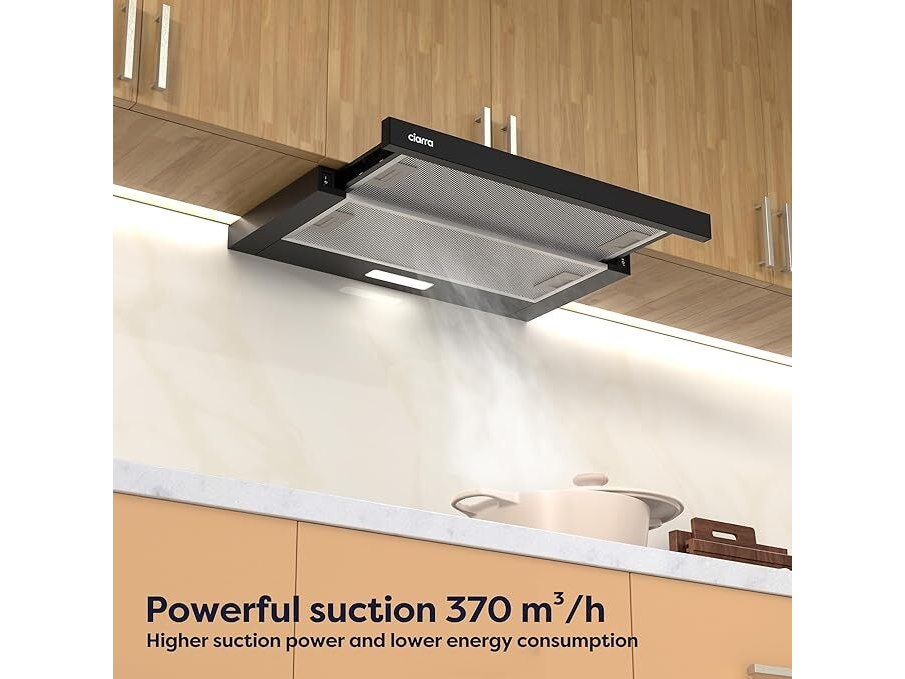 Lichte gebruikssporen, getest en werkend, ok, vijzen en pluggen ontbreken, CIARRA CBCB6906D A++ platte afzuigkap (60 cm) 370 m³/h met CBCF002X2 actieve koolfilter geïntegreerde inbouw platte afvoerlucht circulatielucht afzuigkap 2 standen LED-verlichting zwart, B0BY2LSGVG