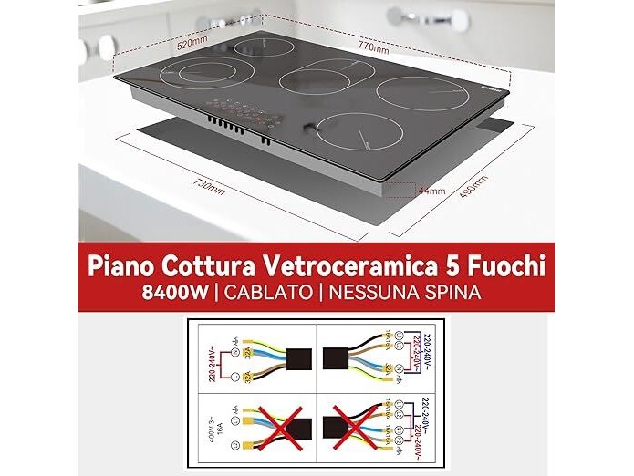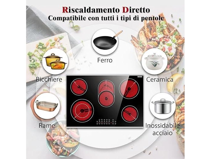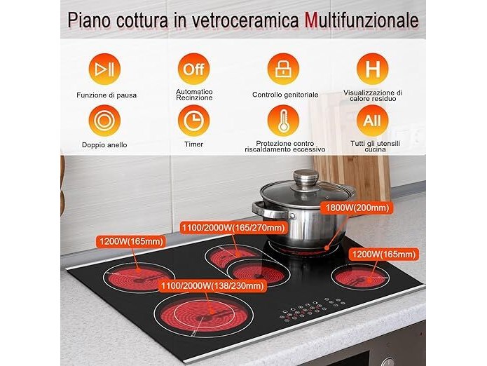 Minieme gebruikssporen, getest en werkend, volledig, ok, beschadigde verpakking, Karinear Keramische kookplaat (5 platen) inbouw, keramische kookplaat 5 zones, 77 cm, kookplaat 5 kookplaten, met aanraakbediening, timer, kinderbeveiliging, 220-240 V, 8400 W, B0DDG2J4C8