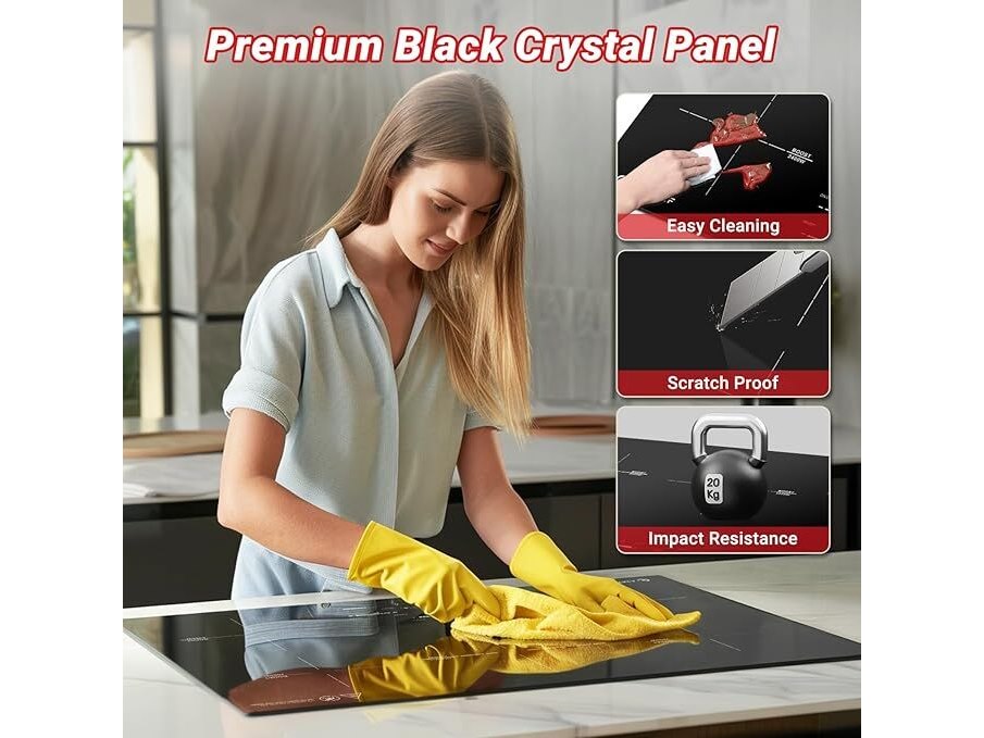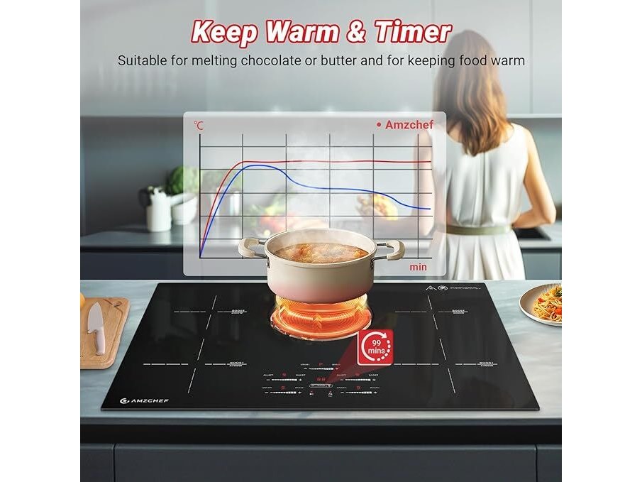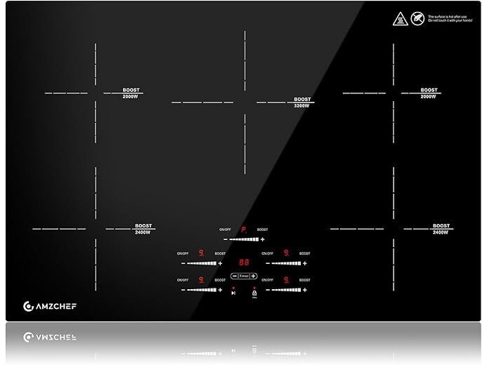 Ongebruikt, getest en werkend, volledig, ok, AMZCHEF Inductiekookplaat (80 cm), inbouw inductiekookplaat, 5 zones met booster en 9 niveaus, pauzefunctie, warmhouden, sliderbediening, timer, veiligheidsslot, 9500 W, B0DK4XR3KH