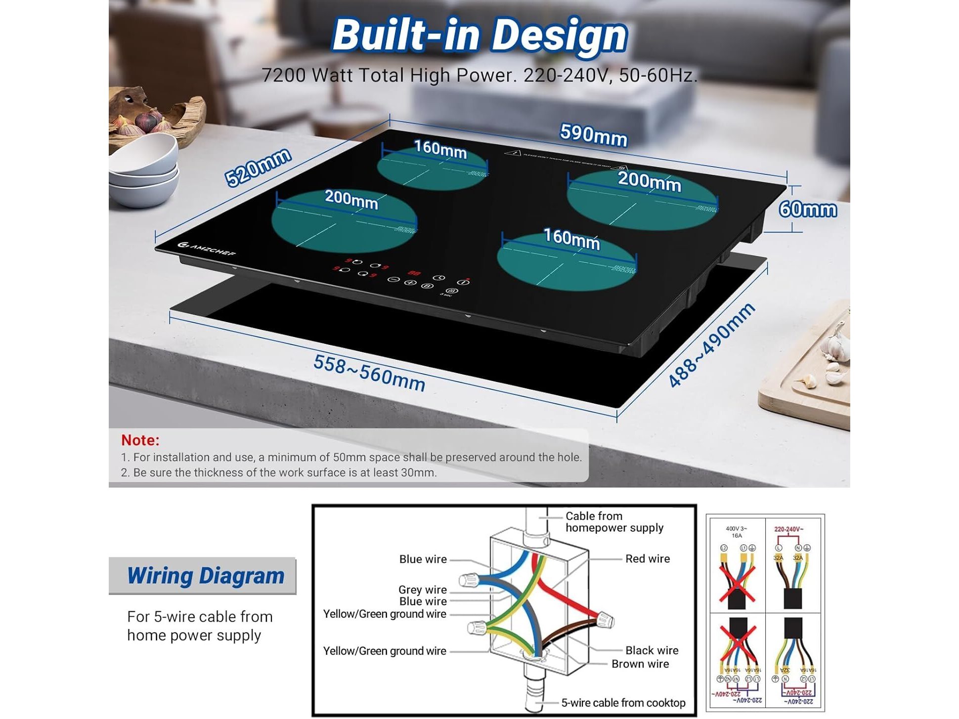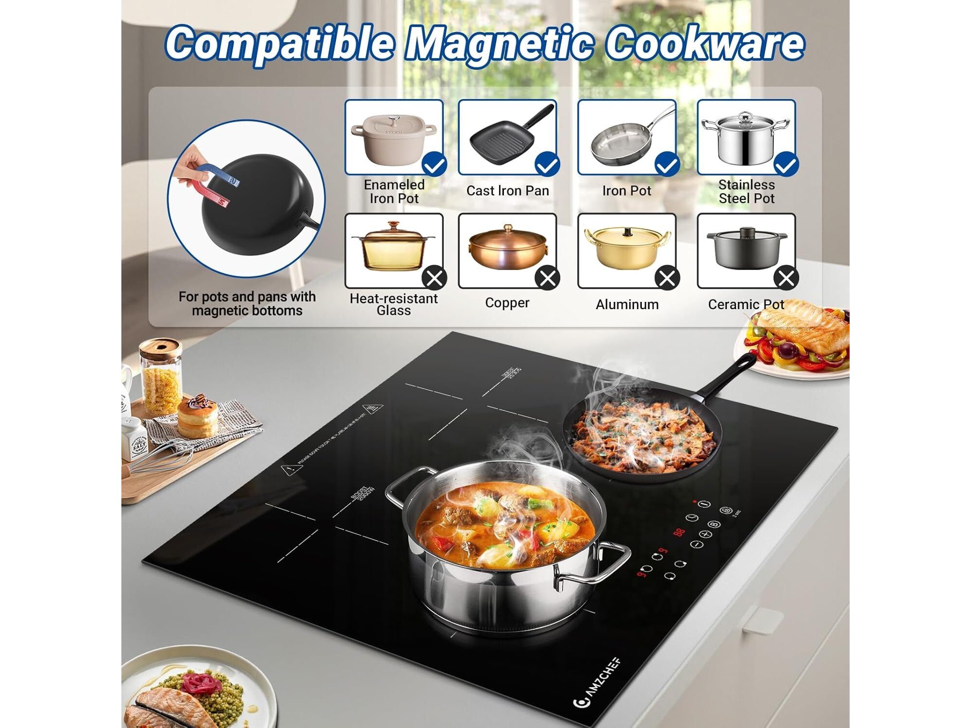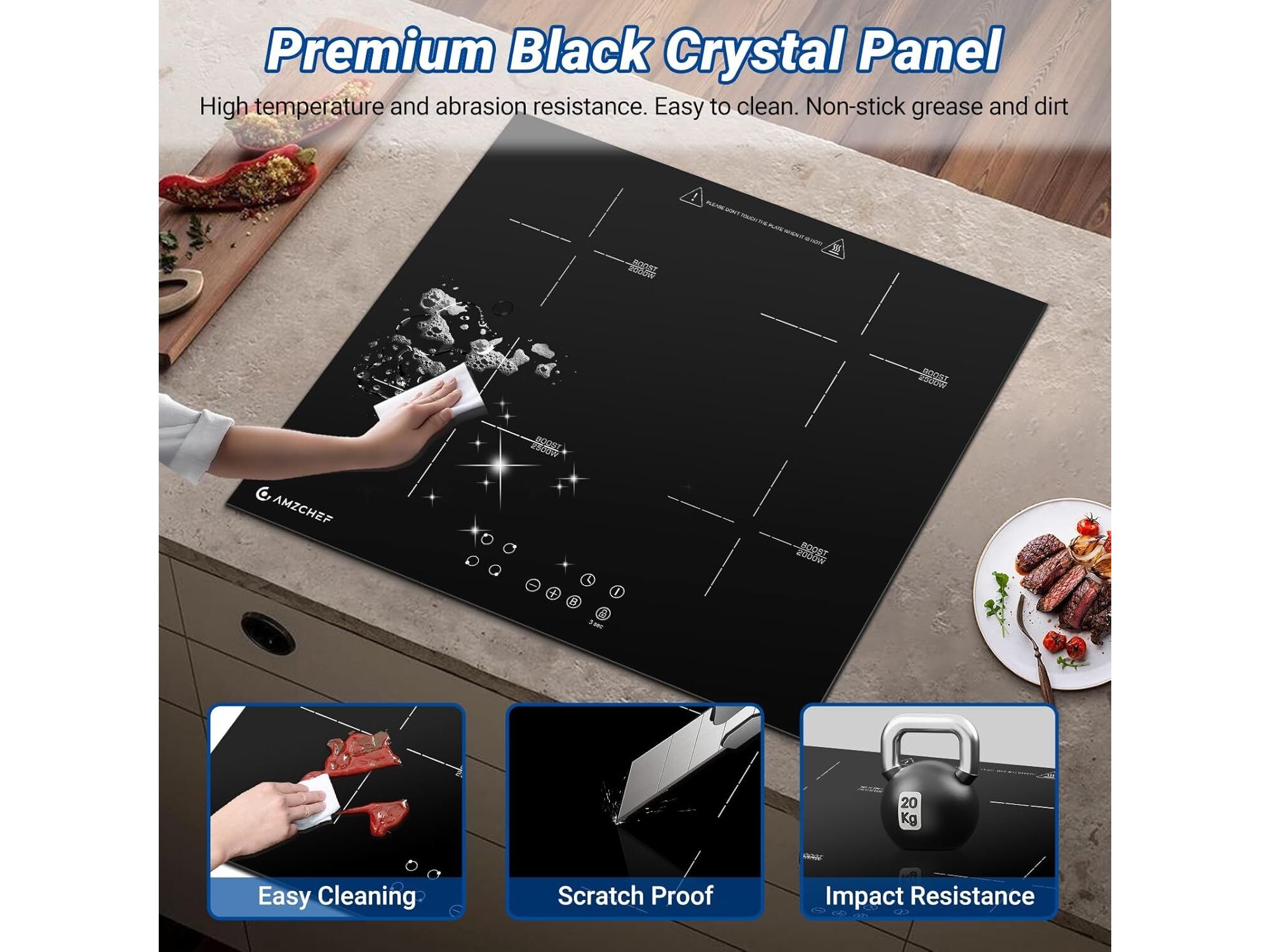 Amzchef inbouw inductiekookplaat (4 zones)