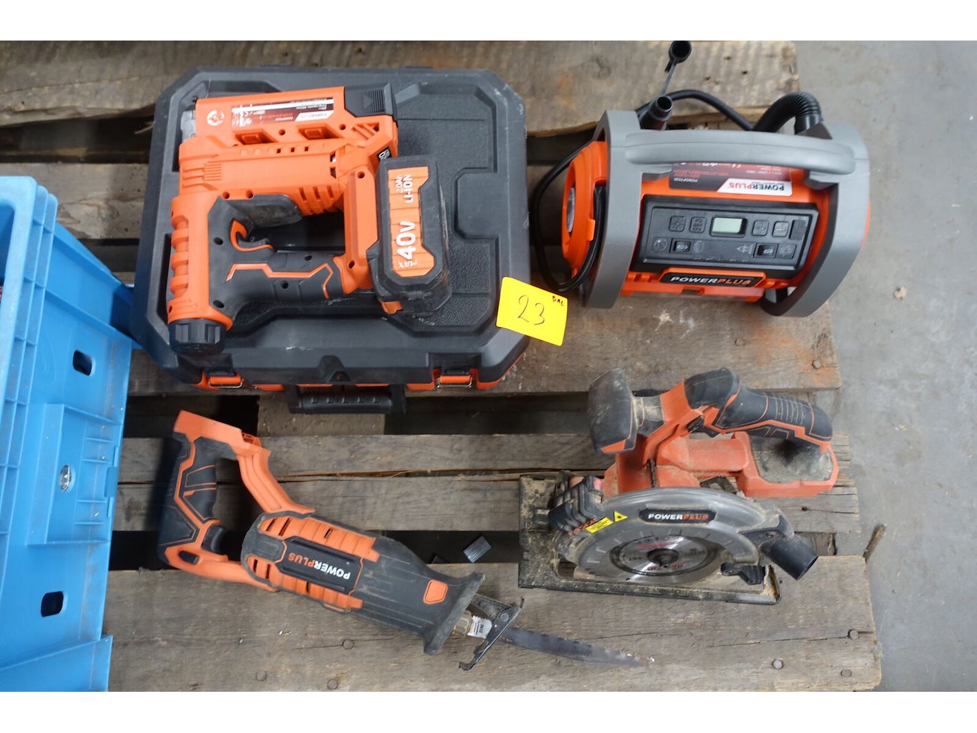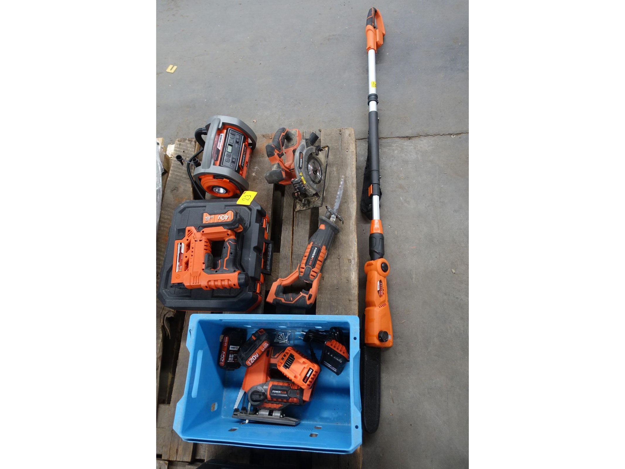 Oa: kettingzaag , zaagmachine, nagelschieter , reciprozaag, decoupeerzaag , radio , vv: 2x lader 3x batterij <br /> locatie: A8