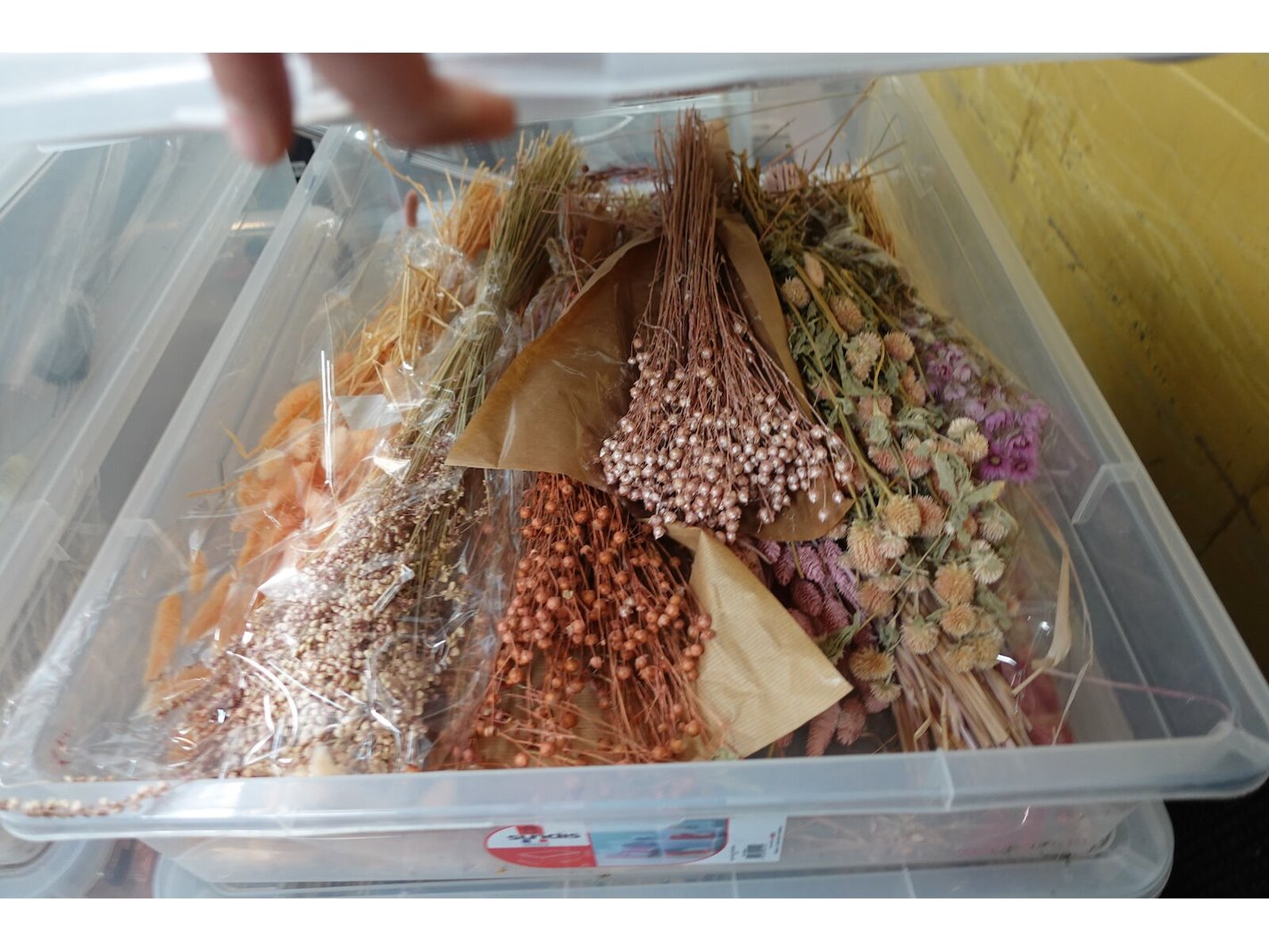 Inhoud: gedroogde bloemen , 560x780x170 <br /> locatie: A4