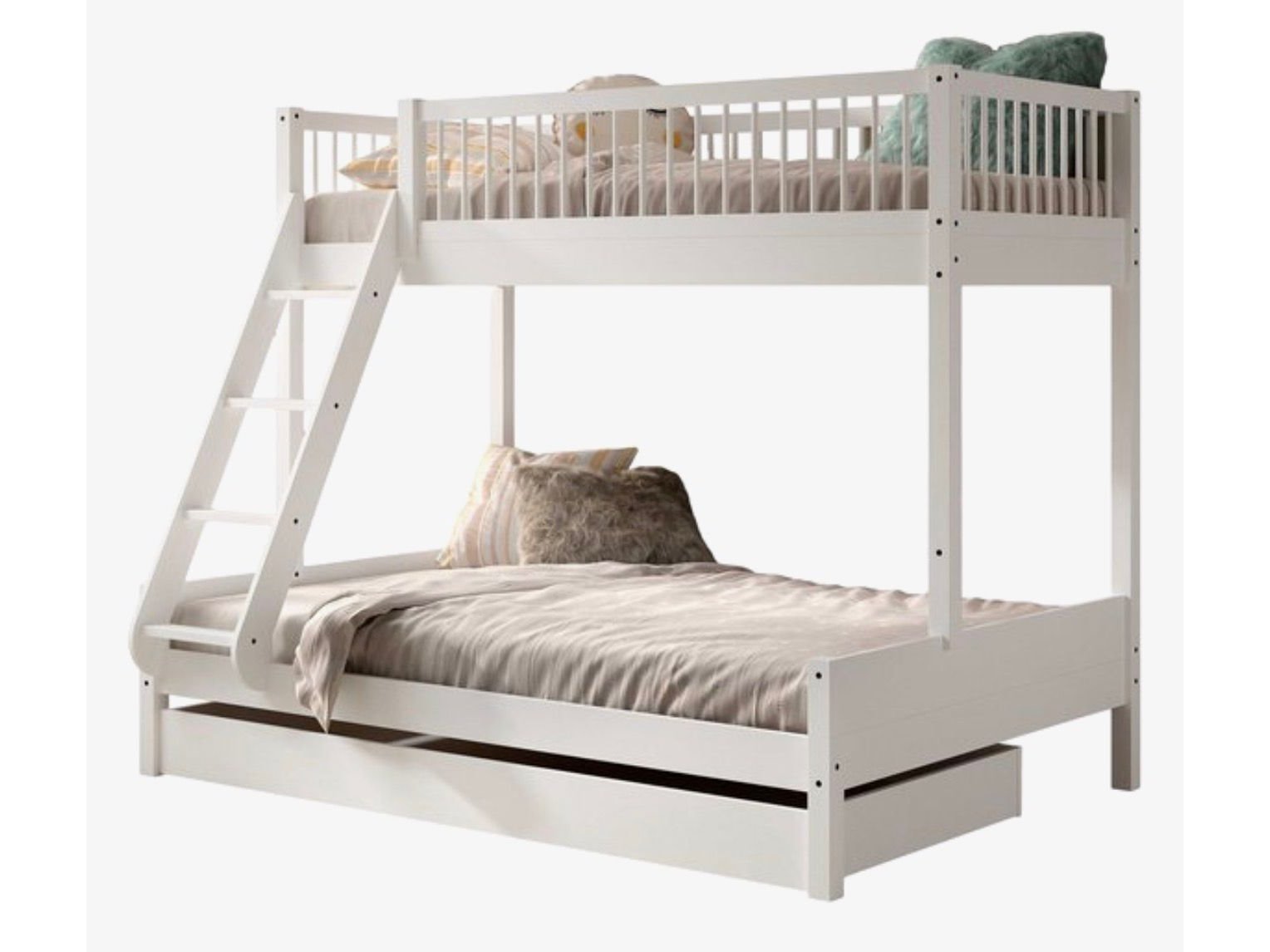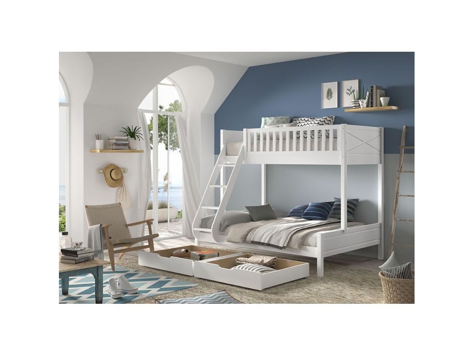 Showroommodel - Stapelbed Forrest - 3 personen - 90 x 200 cm. & 140 x 200 cm. - dubbele schuiven onderaan - incl. 2 ongebruikte koudschuim visco matrassen