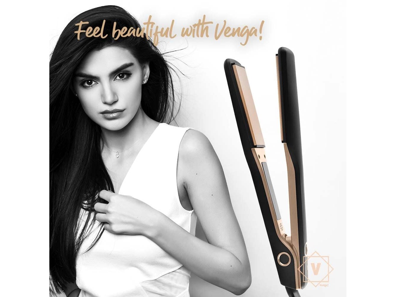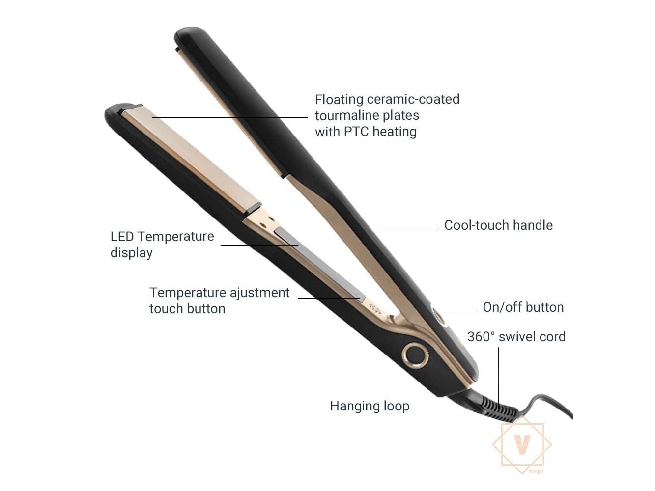 Ongebruikt in originele verpakking - Grote, met keratine verrijkte, zwevende platen, keramische coating met toermalijnionen, temperatuurregeling, LED-display, 50 W, zwart/goud