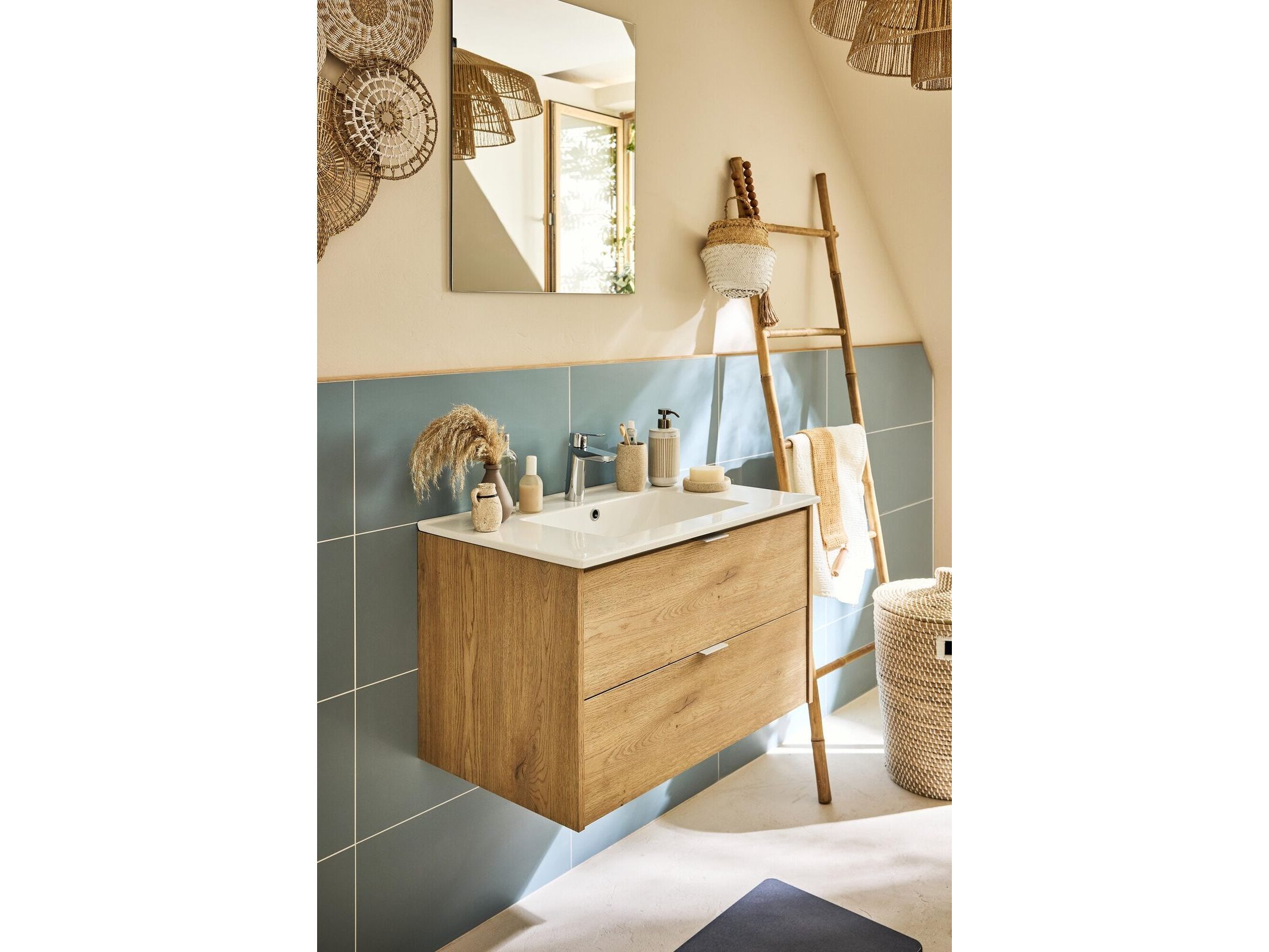 Enkele wastafelmeubel, 80 cm breed, eikenhouten look
